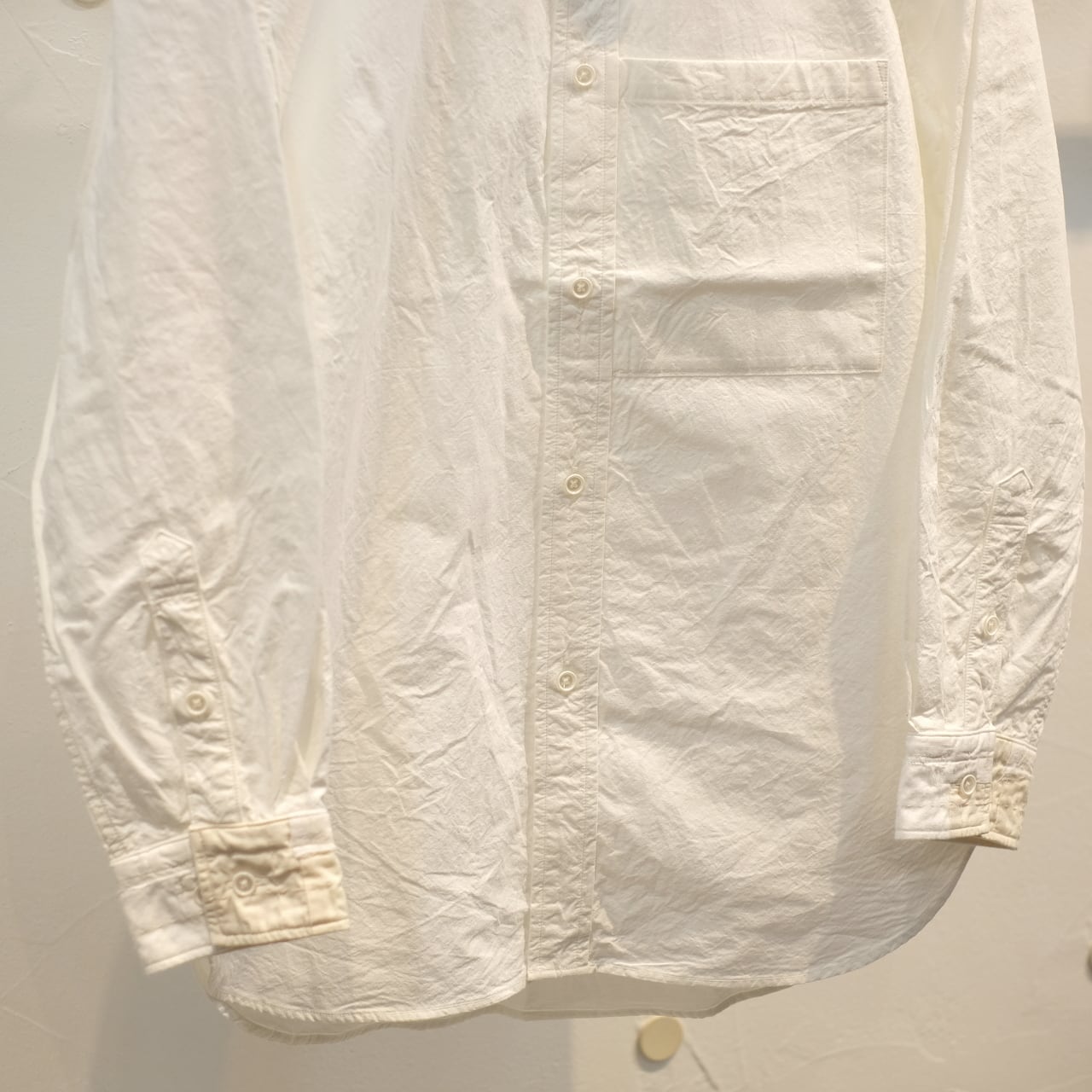 ボディ全般にはシワ感が細かく美しく出るハリ感のあるファナージュコットン(タイプライタークロス)を用いることで、極めて美しく、表情豊かな一枚に仕上がっています。