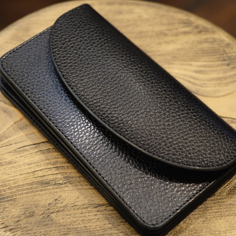 そしてフラップを閉めた時には独特なふくらみが生まれ、手にポンと持った時にぽってりと可愛く映るウォレットです。