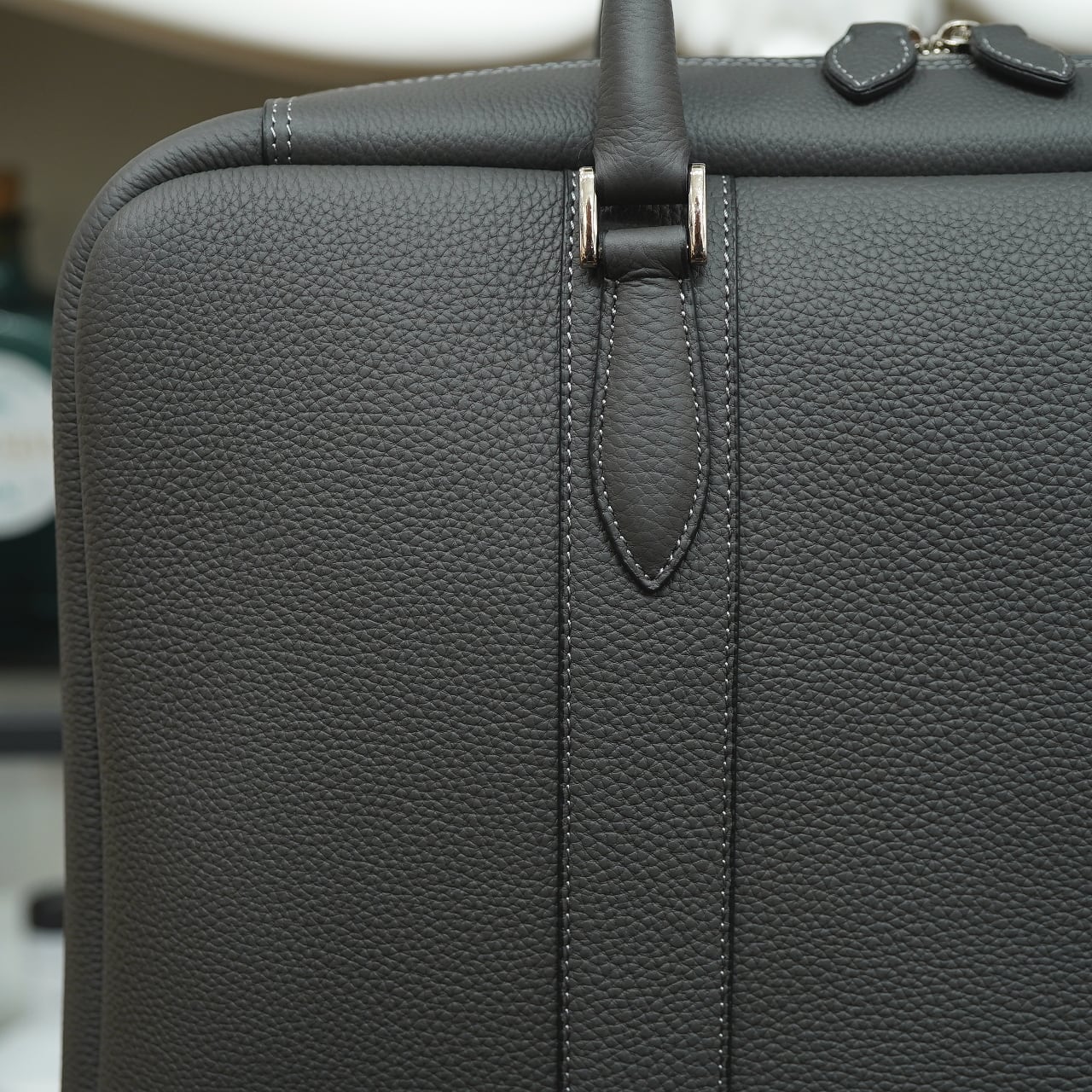 短ハンドルは肩掛けはできませんが、その分シュっとスタイリッシュな空気がまし、ビジネススタイルの雰囲気が強く出てきます。