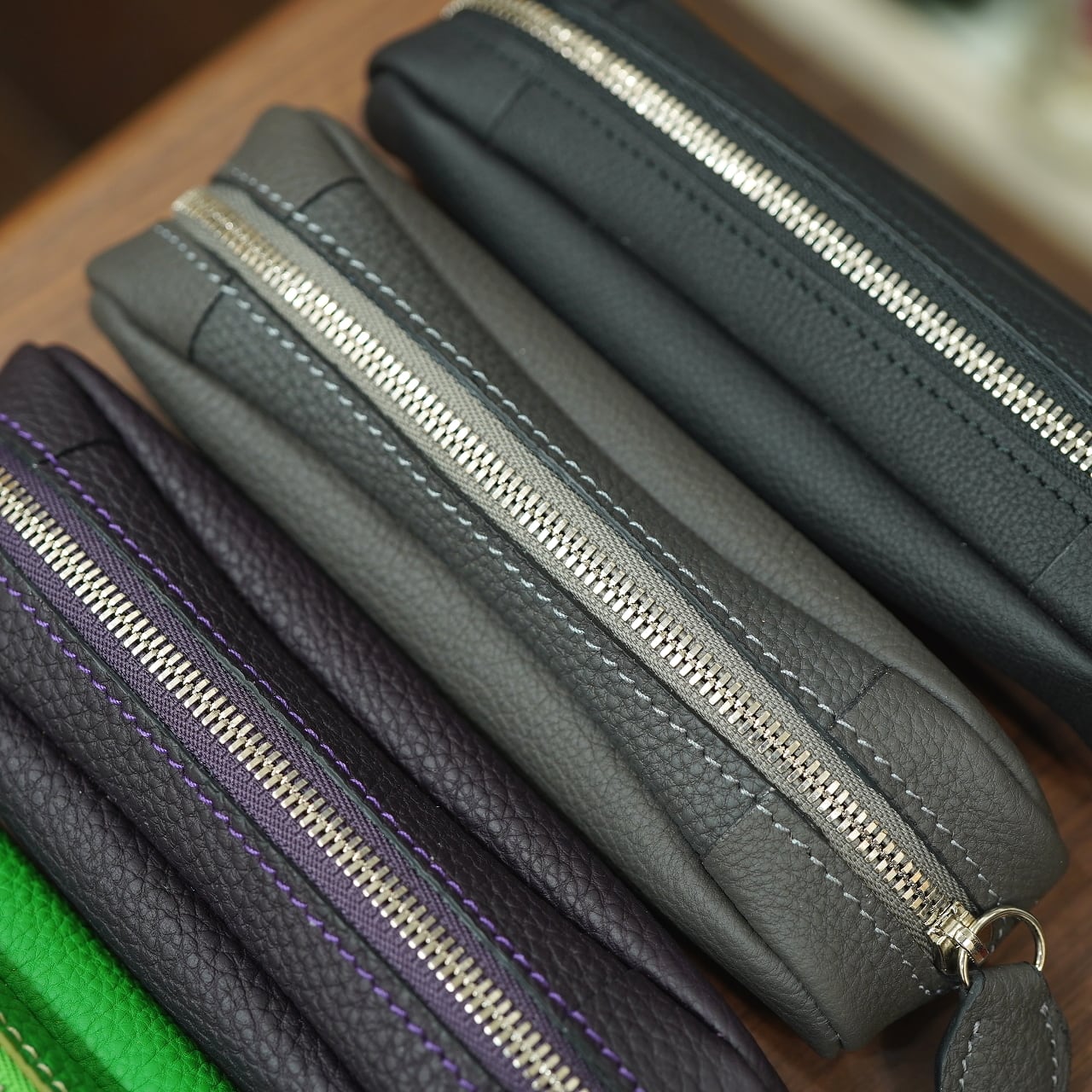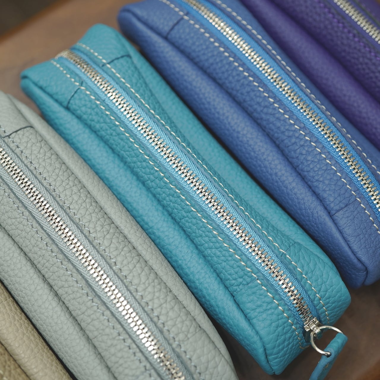 上質な海外皮革を始め、様々な革を厳選して使用し、ふっくらと味わい深く洗練されたバッグや、お財布などを生み出している神戸の革ブランド、ル・ボナーが近年新しく作るようになったコンパクトなペンケースであるコロンのシュランケンカーフバージョン、久しぶりに色がずらっと制作されたので展開です。