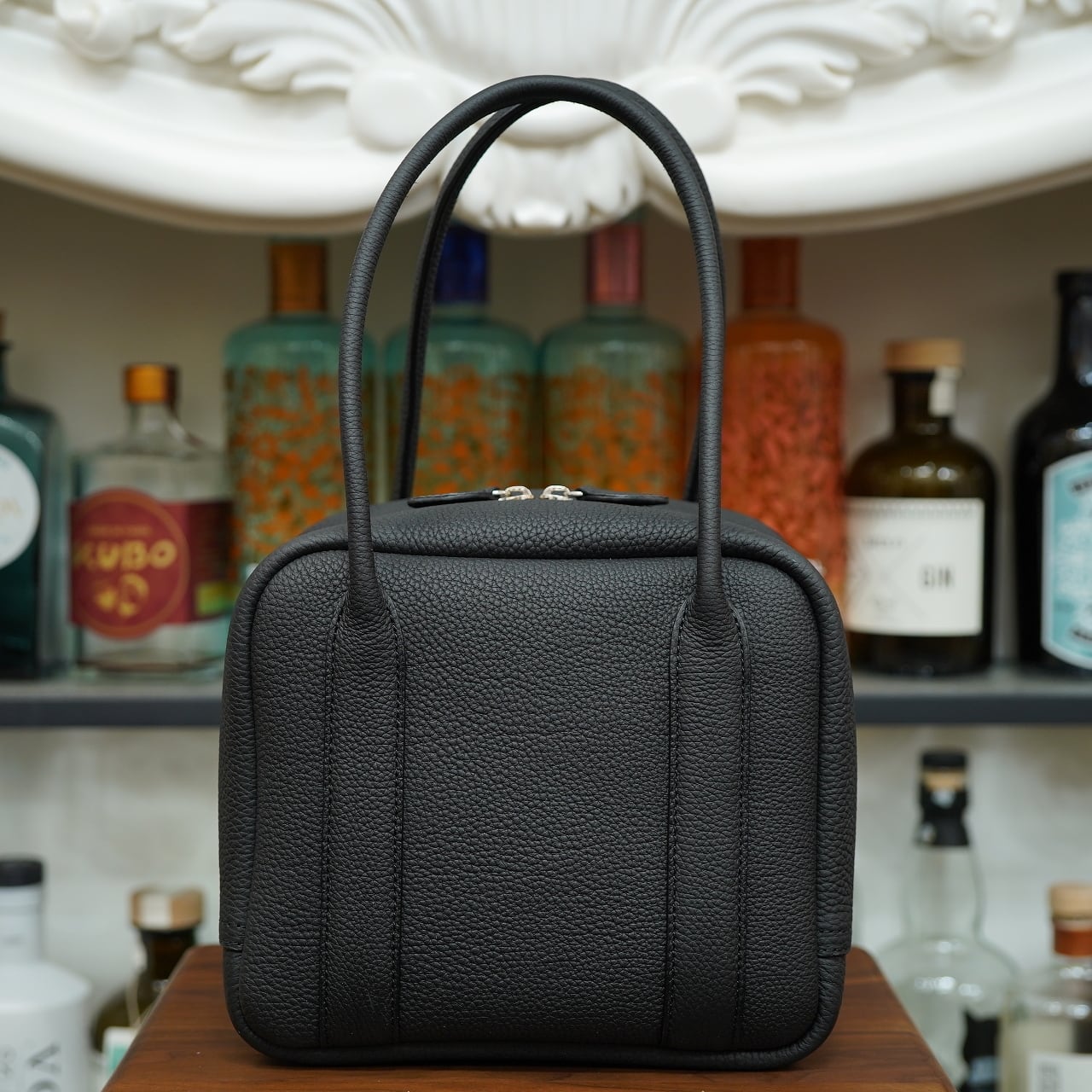 サイコロのようにコロリとしながらも、非常にふっくらと柔らかいフォルムを目指して製作された型は、他のバッグには見られないほど上品な趣が漂い、和洋問わず様々なシーンでお愉しみ頂ける、ほどよいサイズのハンドバッグです。