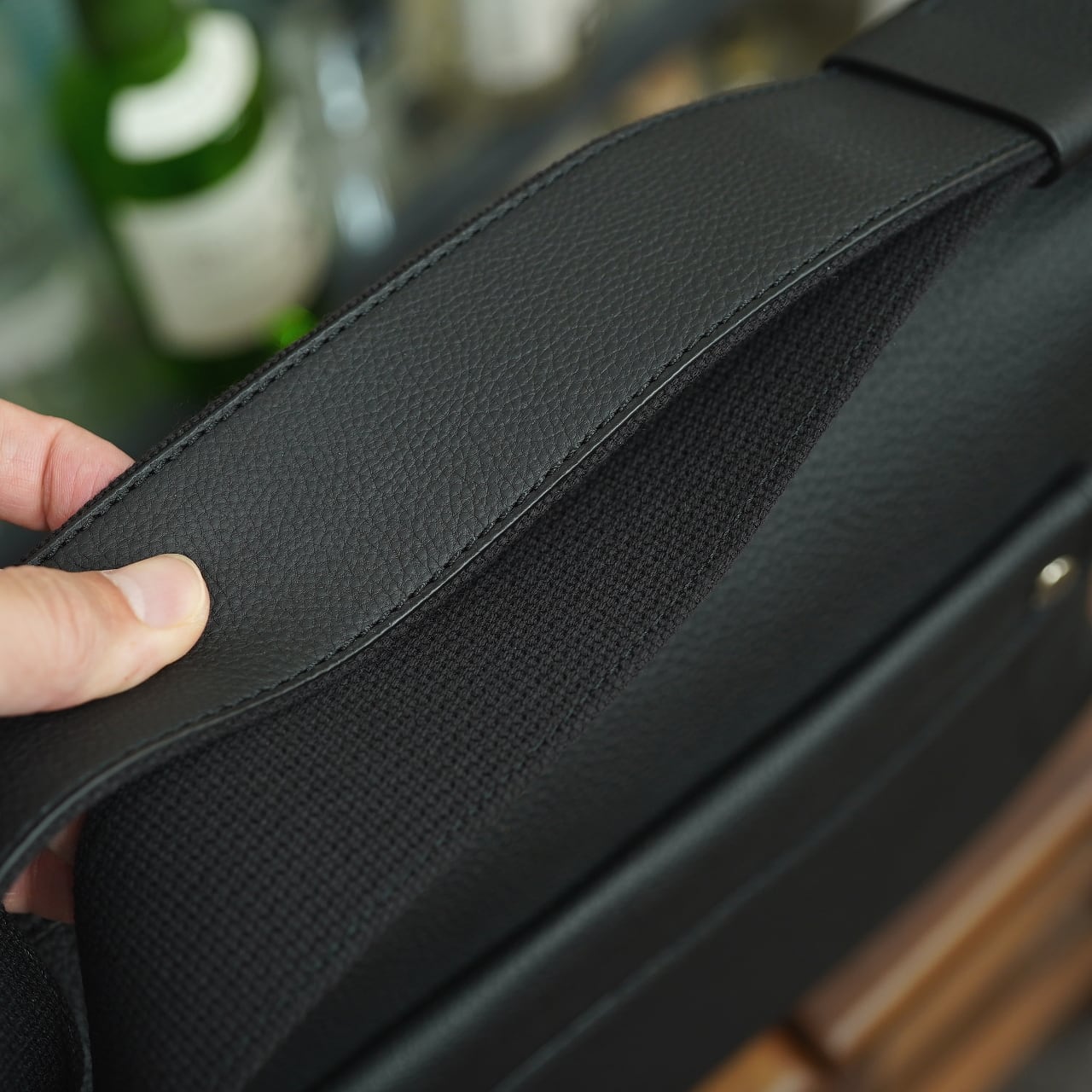 ショルダーストラップは無段階調節ができるようになっていますので、短くキュッと持つのもよし、長めでゆったり使うことも可能です。