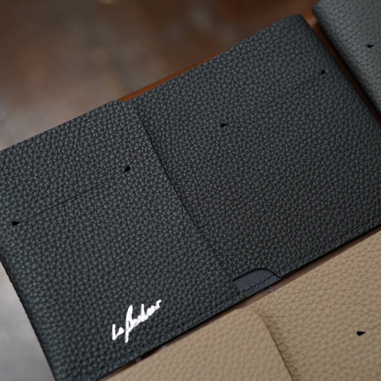 上質な海外皮革を始め、様々な革を厳選して使用し、ふっくらと味わい深く洗練されたバッグや、お財布などを生み出している神戸の革ブランド、ル・ボナーが作る、薄さと軽さ、日常の使いやすさを意識して製作される小物、残心シリーズの二つ折り純札入れです。