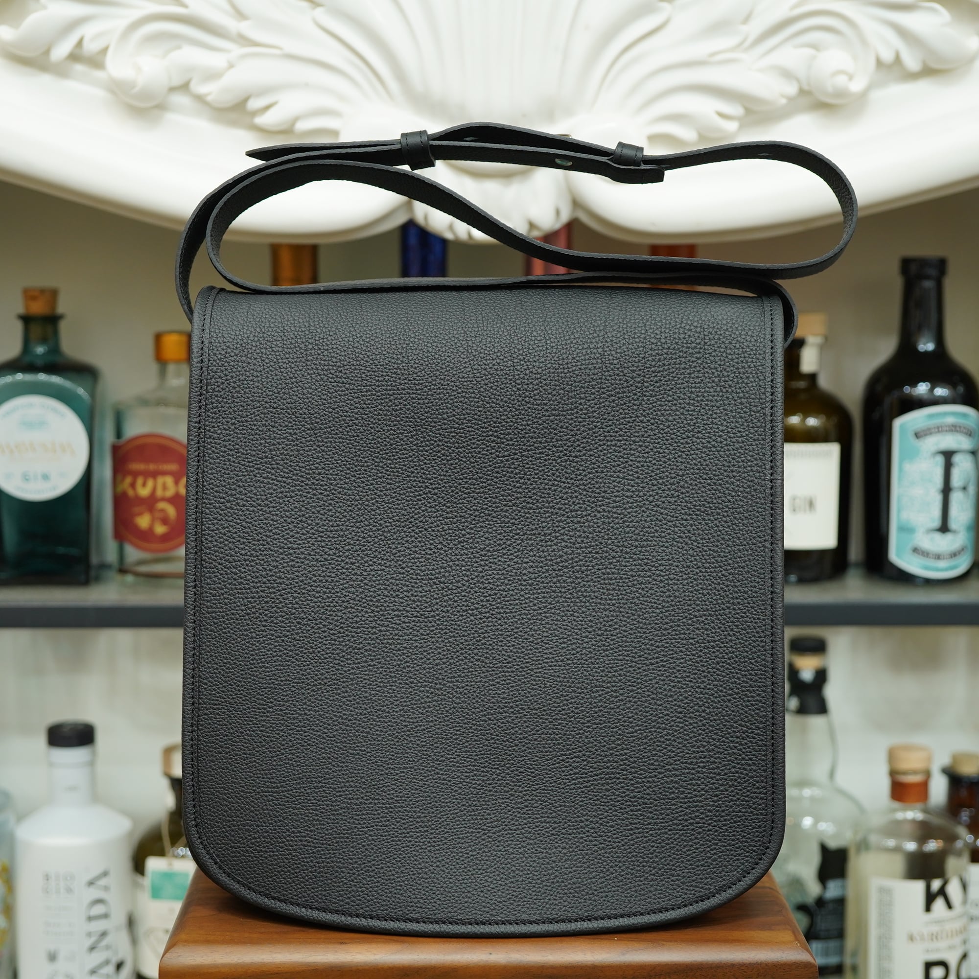 全体的にシュランケンカーフの大きな盤面を使っているので、ショルダーバッグながら広い面積で革の風合いを愉しめます。