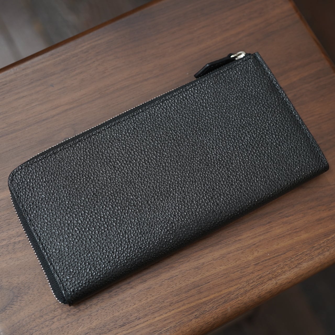 ファスナーはラウンドウォレットよりも少し細めの3番を使用し、軽やかに滑らかなつくりに。