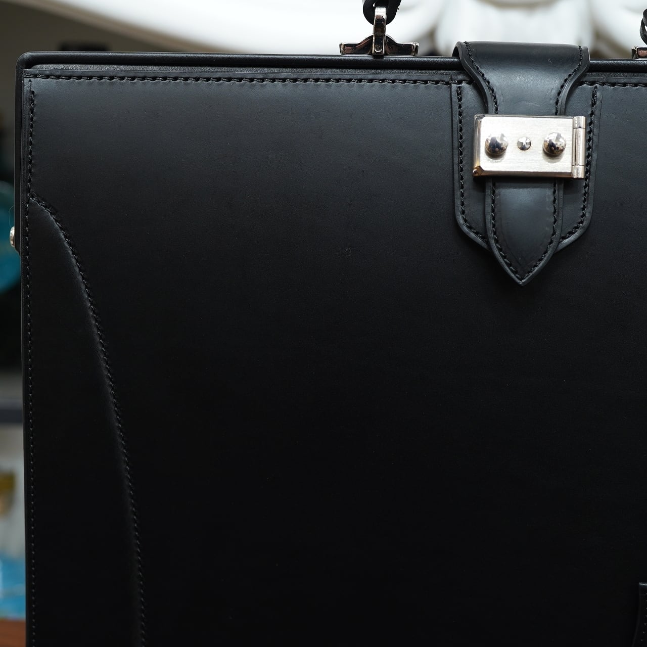 ハードケースとしてのバッグの空気に非常に良く合い、革の耐久性や復元力も高いことから、長く長くご愛用いただける素材。